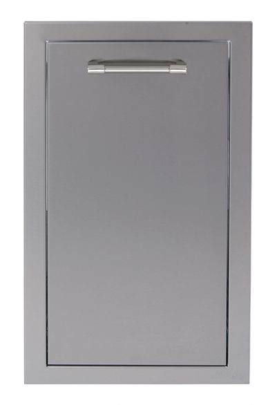 The Alfresco trash center drawer pulls out on German engineered smooth gliding full-extension slides and includes a durable plastic receptacle.Alfresco offers a complete selection of doors and drawers that provide functional and organized storage perfect for any outdoor kitchen. These convenient and practical outdoor island components feature 304 stainless steel construction, ensuring that they will stand the test of time and endure the elements in any environment. This 15-inch pull-out smooth-gliding trash bin drawer features German engineered soft-close hardware for a comfortable feel and reduced stress on moving parts. A durable 41 1/4 quart plastic trash receptacle is included. Stamped with the Alfresco logo, you can be assured you are receiving high quality equipment.