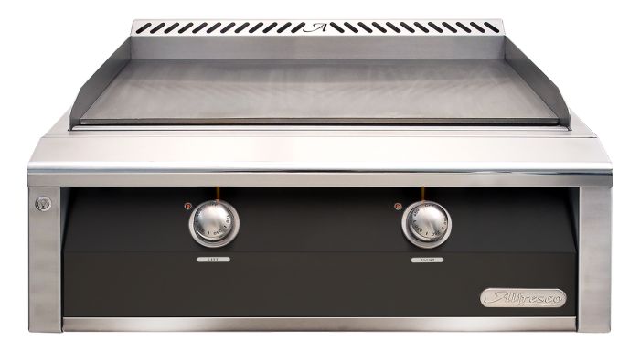 Designed with precise and even cooking in mind, the Alfresco 30-inch dedicated natural gas built-in griddle is the perfect addition to your outdoor kitchen. Constructed of 304 welded stainless steel and polished accents, this griddle is built for long lasting durability. The 3/8-inch solid steel cooking surface gives you 500-sq-inches of cooking space and delivers up to 55,000 BTUs of cooking power. The dual-zone thermostatically controlled griddle surface area creates even heating over the entire cooking area and allows you to cook at two different temperatures at once. With an easy-to-reach, stainless steel push-button ignition and nickel-plated knobs and bezels, the Alfresco Griddle is sleek, stylish, and easy to use.