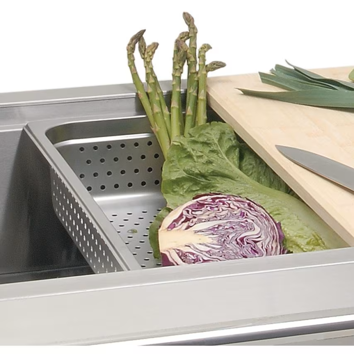 4" deep stainless colander accessory for Alfresco's Versa 30" Sink.| SKU | 388743 |