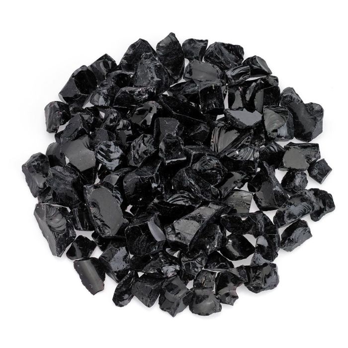 Our onyx medium fire pit glass may be described as dark, elegant, mysterious and exotic all at once! Made from recycled glass, these gleaming black fire glass pieces are guaranteed to impress all onlookers with their opaque luster. Ideal for any outdoor environment, this magnificent glass is especially suited to backgrounds of light shade which will contrast with its stunning black. This medium variety is chunkier as compared with our onyx small fire pit glass, which allows for better air circulation and also delivers a bigger and more impressive flame. When your customers' fire pit is lighted, all eyes will stare in wonder at the amazing display as the dark black fire glass shines and reflects the bright yellow flames dancing above it.