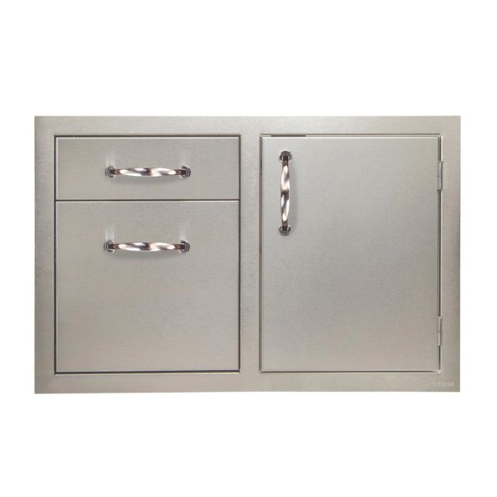 The Artisan door and drawer combination is constructed of 304 stainless steel to ensure long life, easy maintenance, and perfectly match your grill.Artisan ARTP-DDC-32SC Access Door and Double Drawer Combo, 32-Inch provides a premium component for your Artisan outdoor kitchen. Featuring high quality 304 stainless steel construction, these door and drawer unit been built to the same high standards as the rest of Artisan's outdoor kitchen products and features a matching design to easily incorporate into your space. These drawers add convenient storage space to your outdoor kitchen and feature full-length ball bearing slides for smooth operation, while the access door features an easy-close door with magnetic closures.