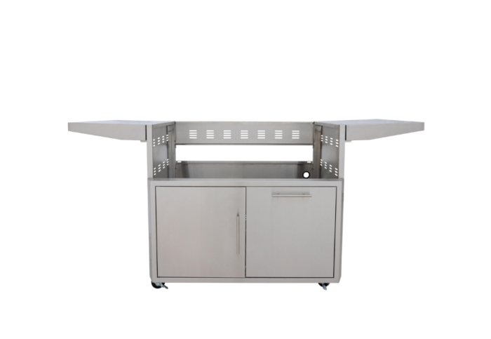 Introducing the upgraded grill cart specifically designed for the 40-inch, LTE PRO Gas Griddle. In addition to a durable stainless steel construction, this cart features two folding side shelves to accommodate cooking preparations. The cart also includes a soft-close door, giving way to an internal shelf for all your cooking tools and accessories, as well as a propane pull-out drawer with under-grill access.