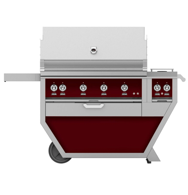 Hestan 42-inch Freestanding Grill with Trellis, Sear, Rotisserie, and Deluxe Cart w/ Double Side Burner - Burgandy - Propane - GMBR42CX2-LP-BG