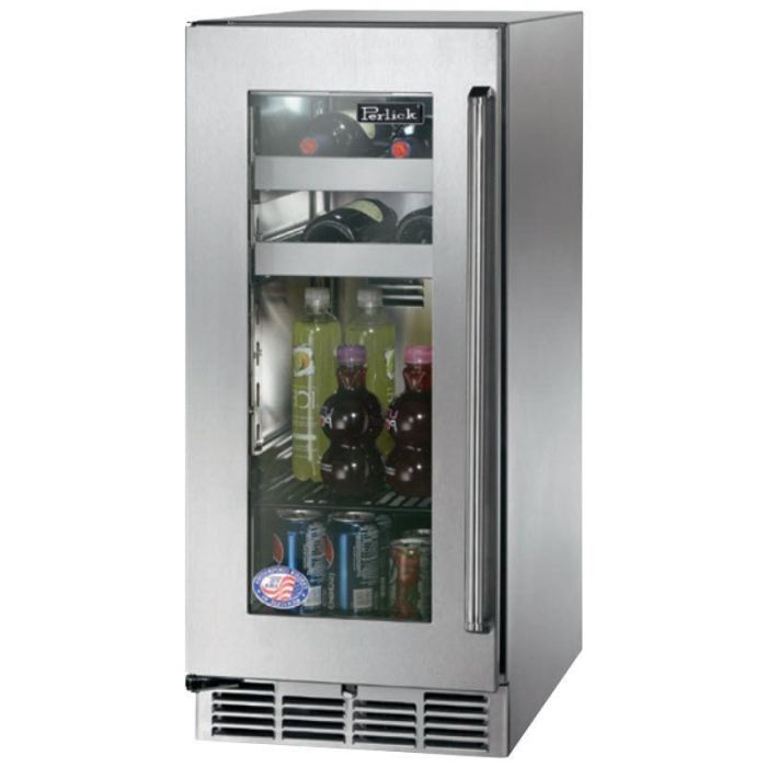 Featuring stainless steel interiors, high-performance refrigeration systems and impeccable craftsmanship, Perlick provides quality refrigeration for your outdoor kitchen. Short on space? No problem. The Perlick 15-Inch Beverage Center combines the convenience of food, beverage and wine storage in a compact 15″ footprint and is UL-rated for outdoor use. The Signature Series features Perlick’s exclusive RAPIDcool forced-air refrigeration system, providing industry leading cooling performance. Insulated walls also help keep cold air in the refrigerator. Perlick’s glass doors provide additional insulation and durability through a UV-coated and low emissivity, or low e-finish. All Perlick under-counter refrigerator shelves are full extension, pulling completely out of the cabinet for easy stocking and retrieving of product. Shelving is black vinyl-dipped to provide additional vibration protection, and shelving glides smoothly in and out of the cabinet on stainless steel ball bearing glides. Perlick Signature Series under-counter refrigeration is brightly illuminated with adjustable LED lighting. A quick flip of a switch instantly changes from crisp white lighting to a cascade of soft, cool blue illumination.