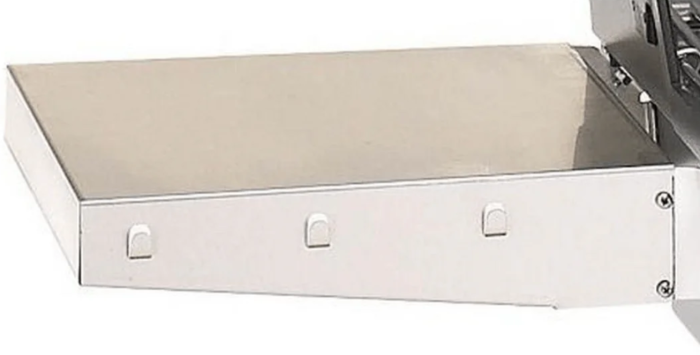 This kitchen component is the perfect surface for holding grilling utensils or serving trays that need a place to rest. This side shelf is designed to fit interchangeably on either side of the grill head.