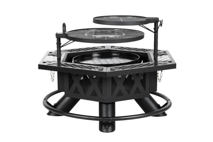 - Hexagonal shaped fire bowl accommodates larger logs, providing a steady and warming flame for extended outdoor enjoyment