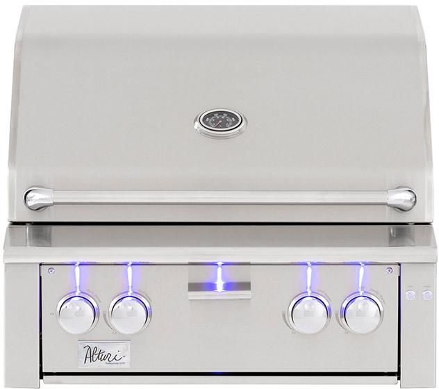 Designed to be a luxurious grill loaded with raw power, the Alturi series from Summerset raises the bar for outdoor cooking.Designed to be a luxurious grill loaded with raw power, the Alturi series from Summerset raises the bar for outdoor cooking. The Alturi ALT30 gas grill is constructed from heavy duty 304 grade stainless steel for long lasting performance and durability. This 30-inch built-in propane gas grill is equipped with two stainless steel U-shaped burners rated for 26,000 BTUs each. The 780 square inch cooking area is covered with 9mm thick, heavy-duty stainless steel cooking grates. A ceramic briquette tray system sits under the grates, which absorb radiant heat from the burners, ensuring the grill provides even heat across the cooking surface. Stainless steel heat zone separators placed between the burners prevent heat from bleeding over, allowing you to cook foods at different temperatures simultaneously or use the grill in a two zone setup, with one portion for direct, high heat cooking and the other for cooler indirect cooking. A double lined grill hood prevents heat discoloration and retains heat. This gas grill also boasts a 15,000 BTU rear infrared rotisserie burner for expanded cooking flexibility. The heavy-duty rotisserie kit can hold up to 100 pounds. Flame thrower ignition supported by a backup flush tube ensures safe, reliable lighting without the need for batteries or electricity. For additional convenience, this grill offers details such as LED front panel illumination, interior halogen lighting and a spring-assisted hood for effortless lifting.