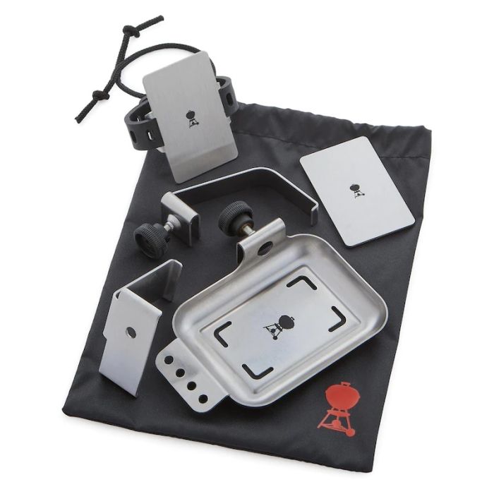 Keep your Weber Connect Smart Grilling Hub by your side as you grill. With easy assembly, the Mounting Kit attaches to charcoal, smoker, and gas grills and securely holds the Weber Connect during your cooks. The kit also includes a storage bag to keep the mounting pieces together.