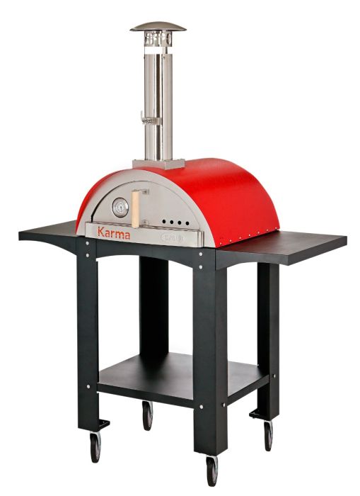WPPO - Karma 25 Wood Fired Outdoor Pizza Oven in Red w/ Black Stand on 4 Casters and Side Shelf - WKK-01S-WS-Red